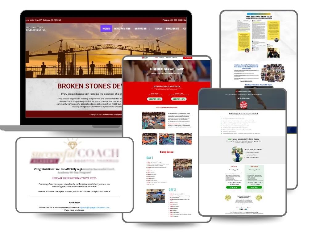Custom-branded, mobile-optimized sales pages designed in WordPress, GHL, Leadpages, Clickfunnels or Kajabi — built to guide your visitor from curiosity to checkout.